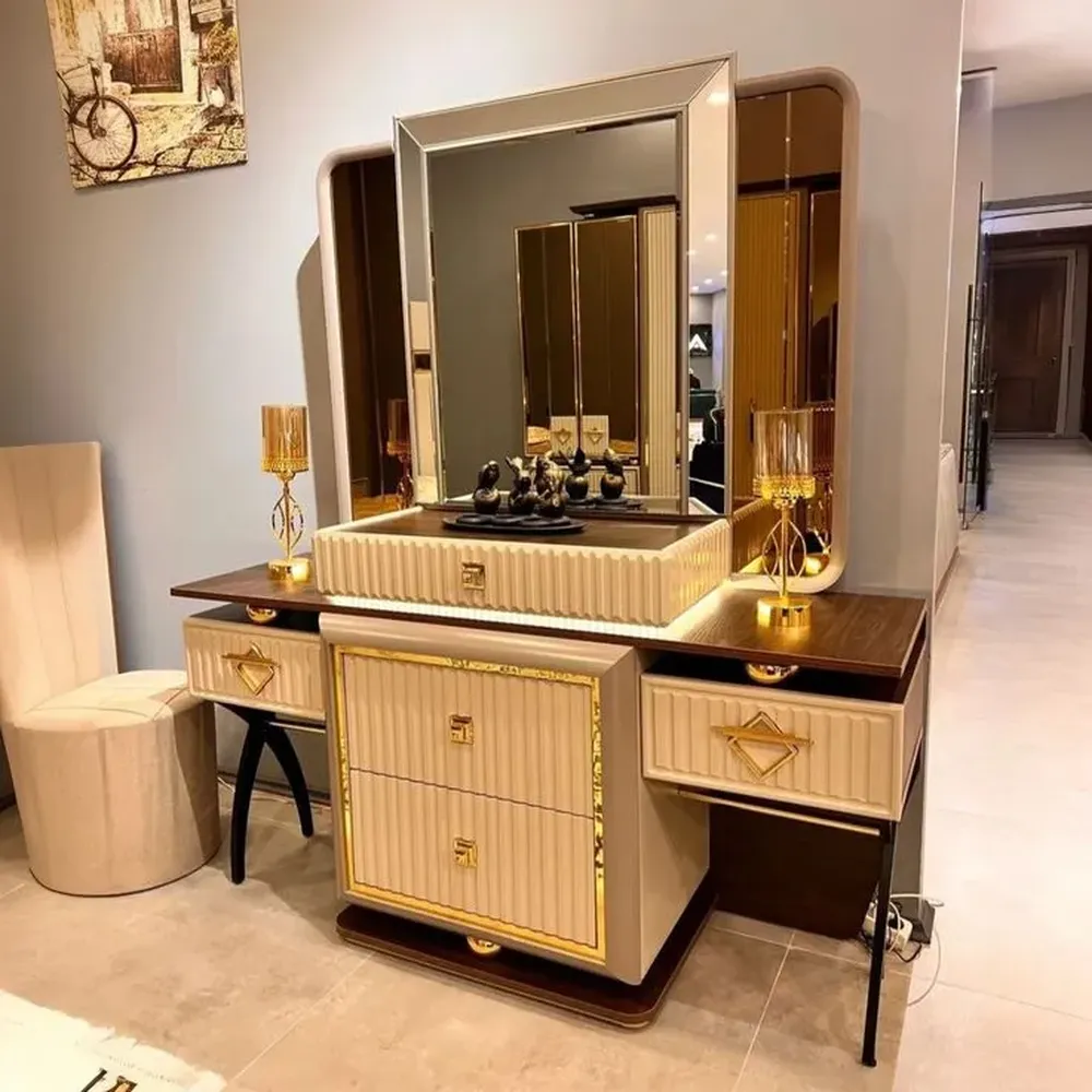 Luxury Gold Deco Bed with Lavender Velvet Carved Headboard