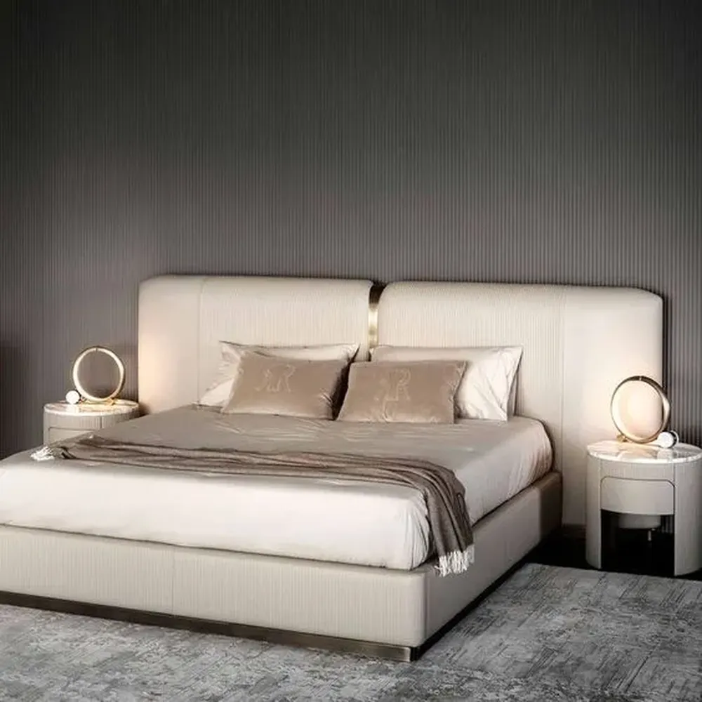 Luxury Turkish Grey Fabric Bed with Gold Vertical Paneling