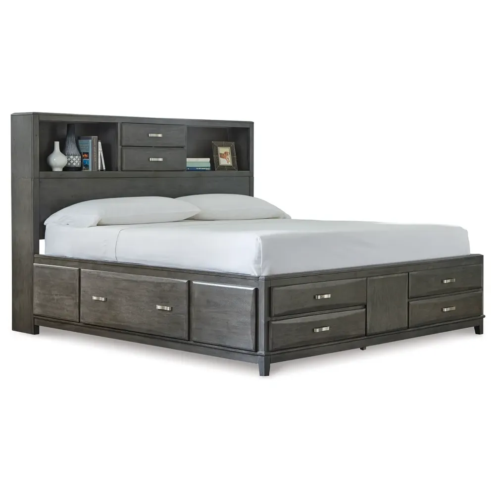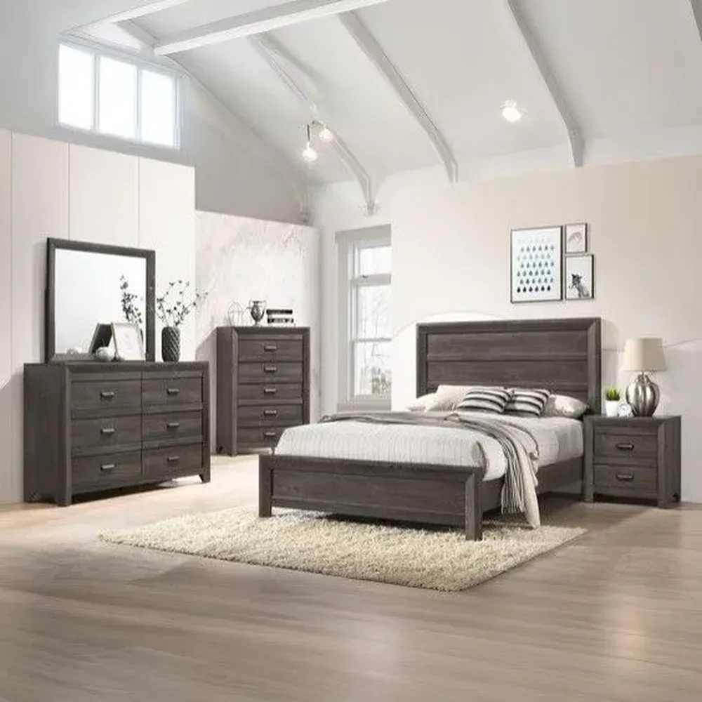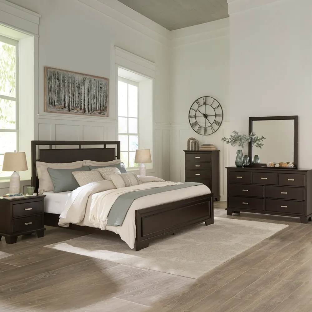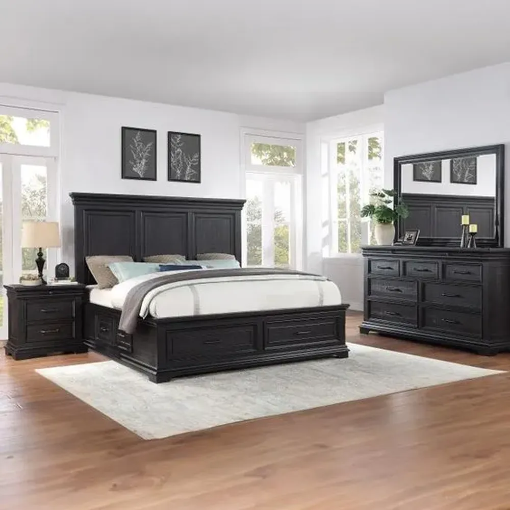 Classic Dark Brown Solid Wood Bed with Tiered Headboard