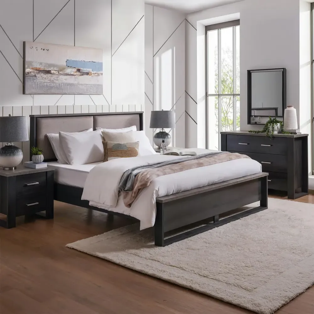 Contemporary Beige and Grey Laminated Fabric Bed