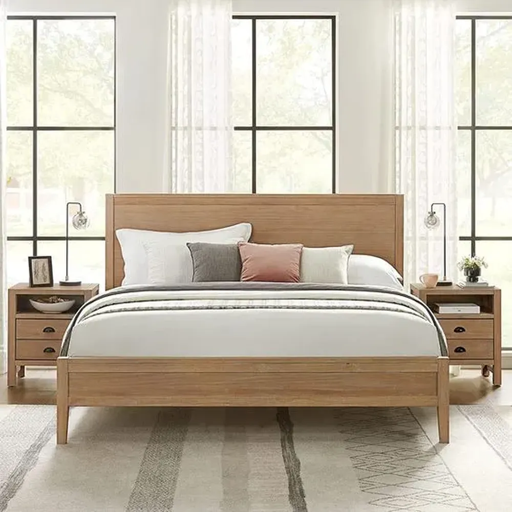 Elegant Light Brown Solid Wood Minimalist Queen Size Bed