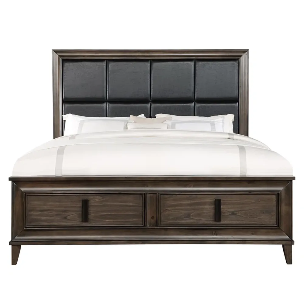 Executive Dark Brown Leatherette Bed with Paneled Headboard