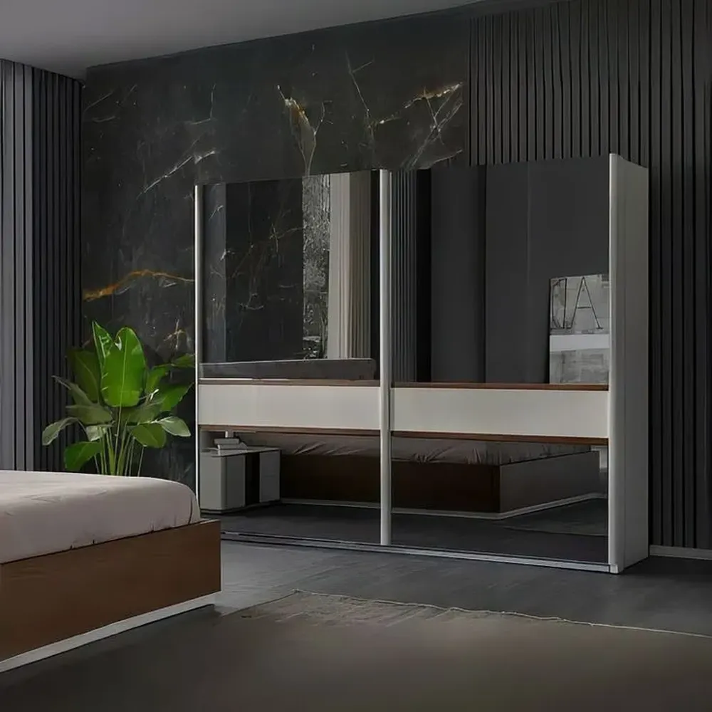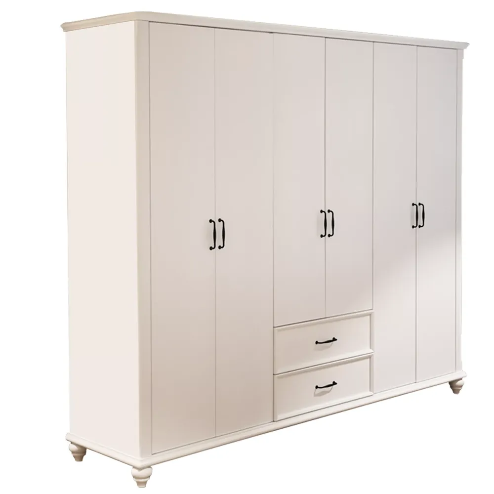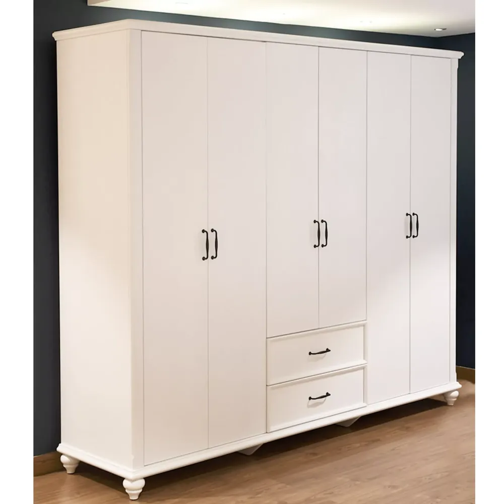 Classic Six-Door White Decona Wardrobe with Center Drawers