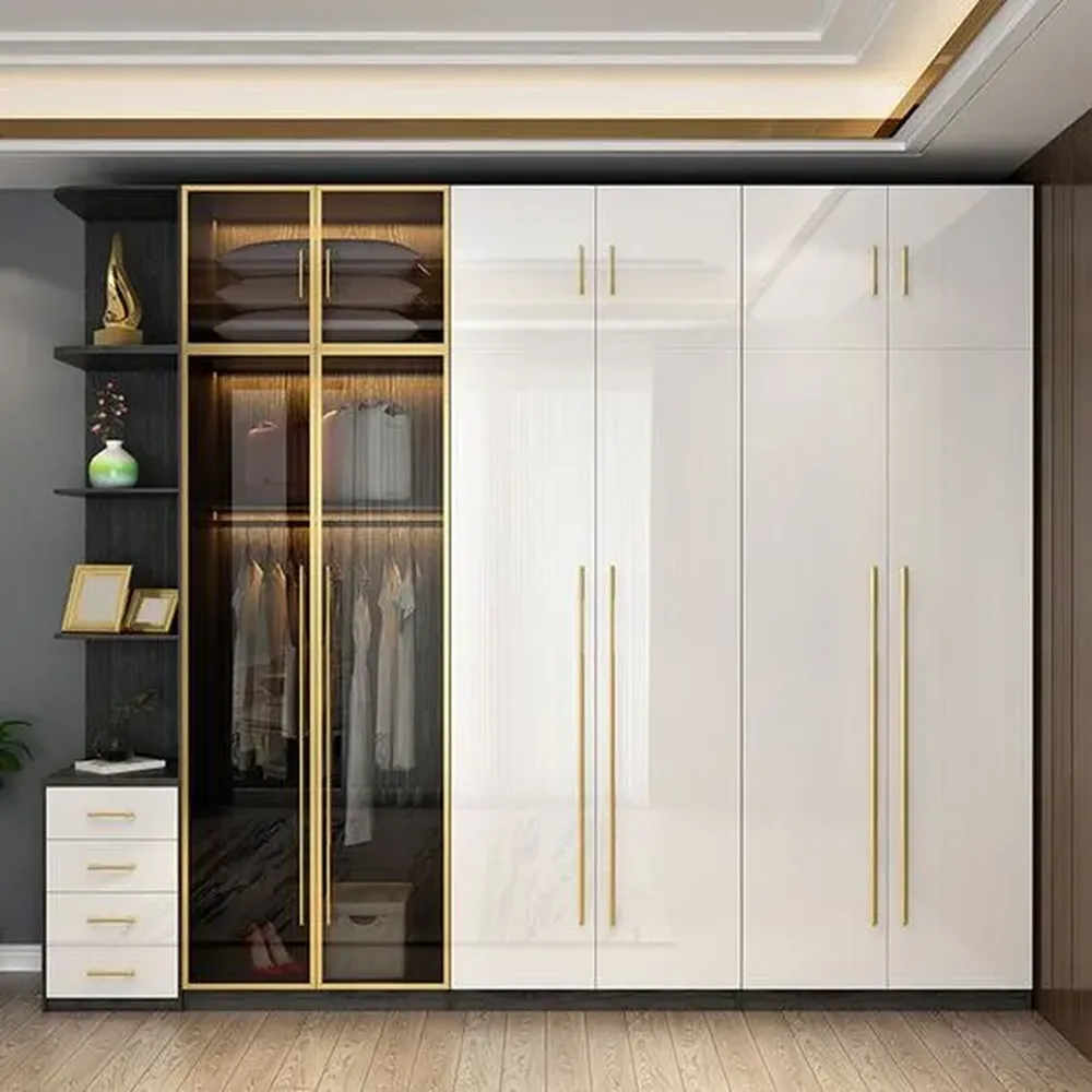 Luxury White Deco 6-Door Wardrobe with Smoked Glass Panels
