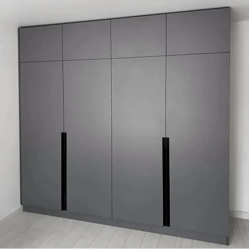 Sleek Modern Grey Seamless Four-Door Wardrobe
