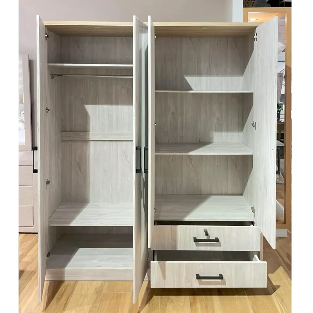 Simple Three-Door Light Grey Wood Grain Wardrobe with Drawers