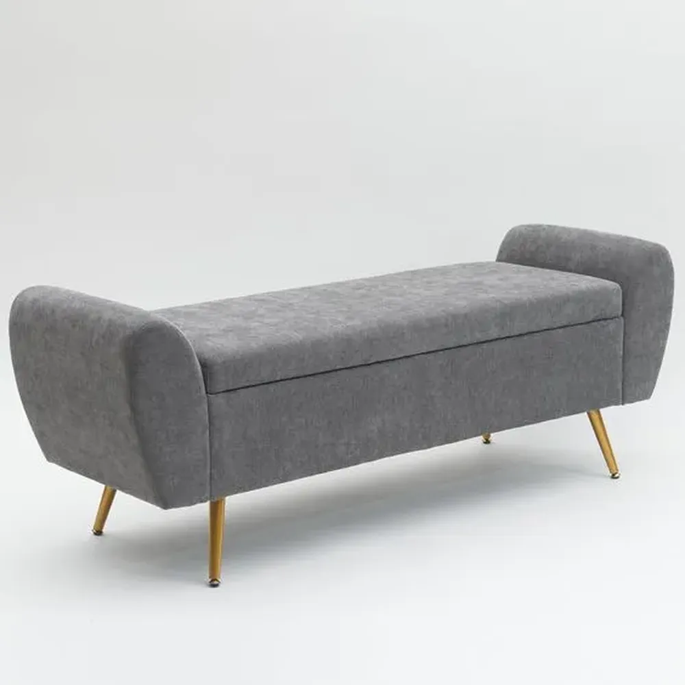Modern Grey Jute Upholstered Bench with Brown Tapered Legs