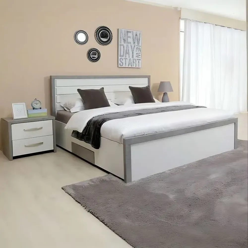 Modern Laminated Double Bed with Grey and White Two-Tone Finish