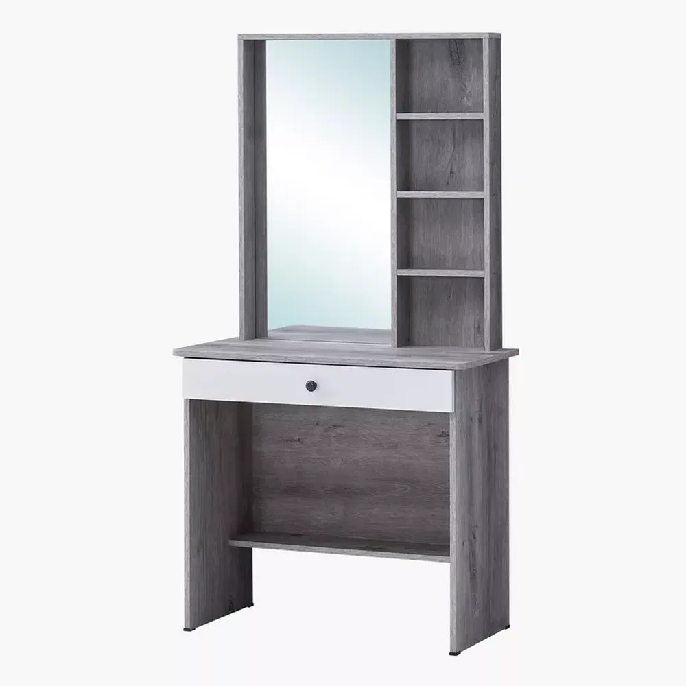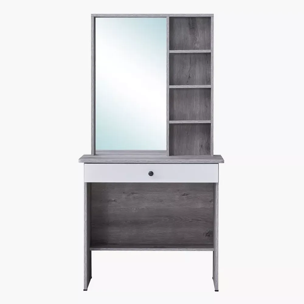 Modern Laminated Grey and White Dressing Table with Mirror