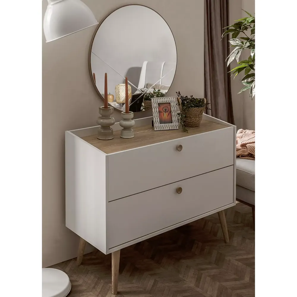 Modern Two-Tone White and Light Brown Dressing Table with Large Mirror