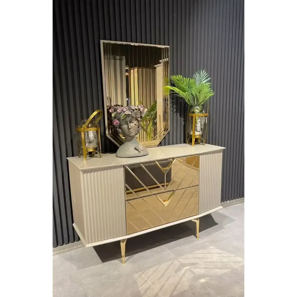 Premium Turkish Fabric Bed with Geometric Patterned Headboard and Mirrored Side Panels