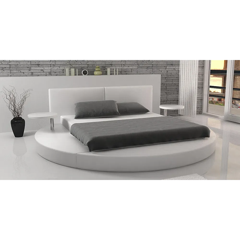 Orion Ultra-Modern Round Floating Bed in White Leatherette
