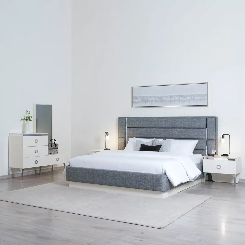 Simple White Deco Bedroom Suite with LED Headboard and Polished Chrome Accents