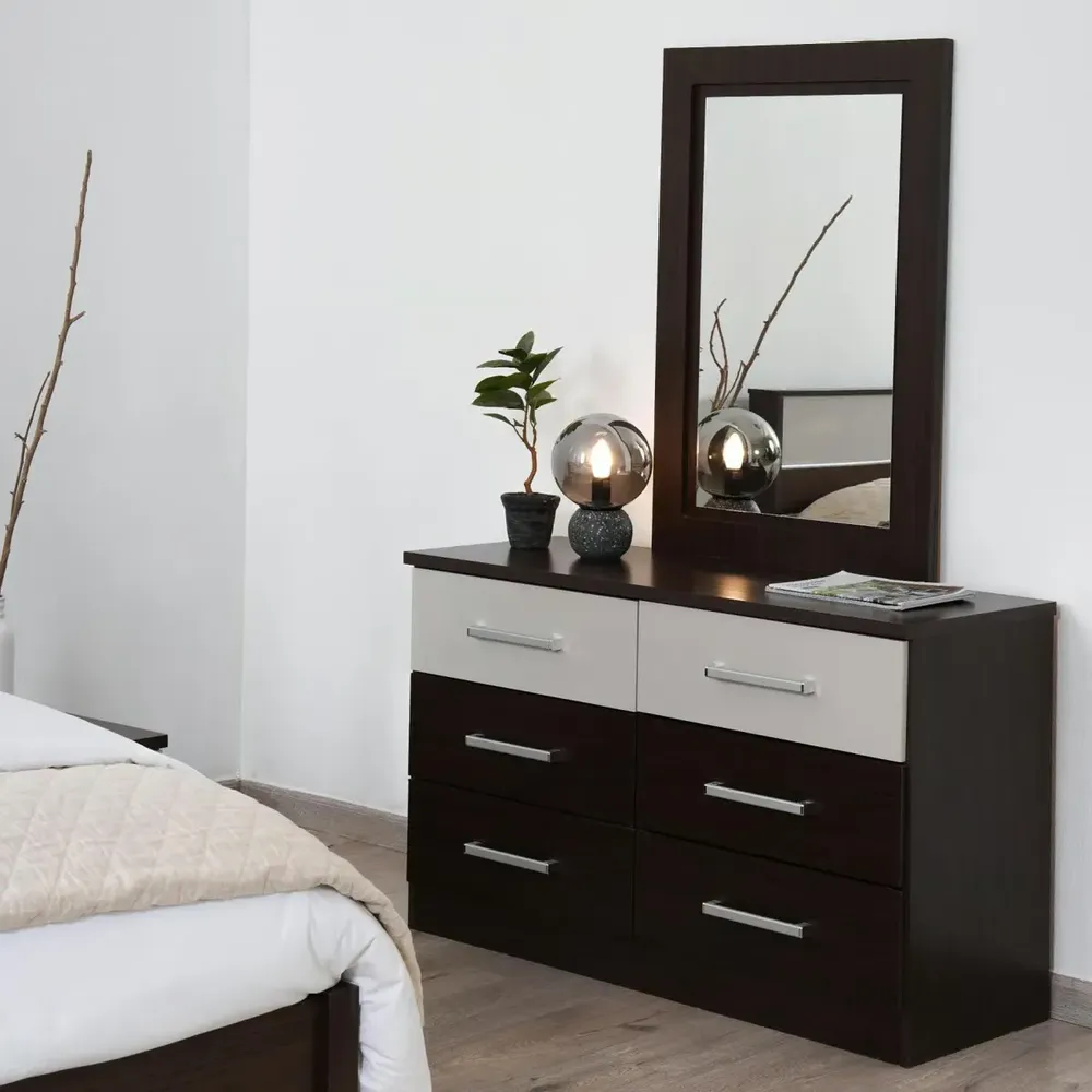 Simple White Wood Grain Cupboard with Full-Length Mirrored Doors