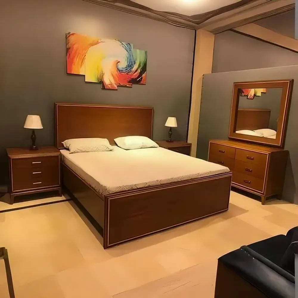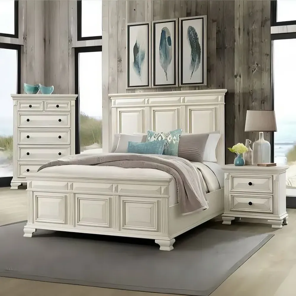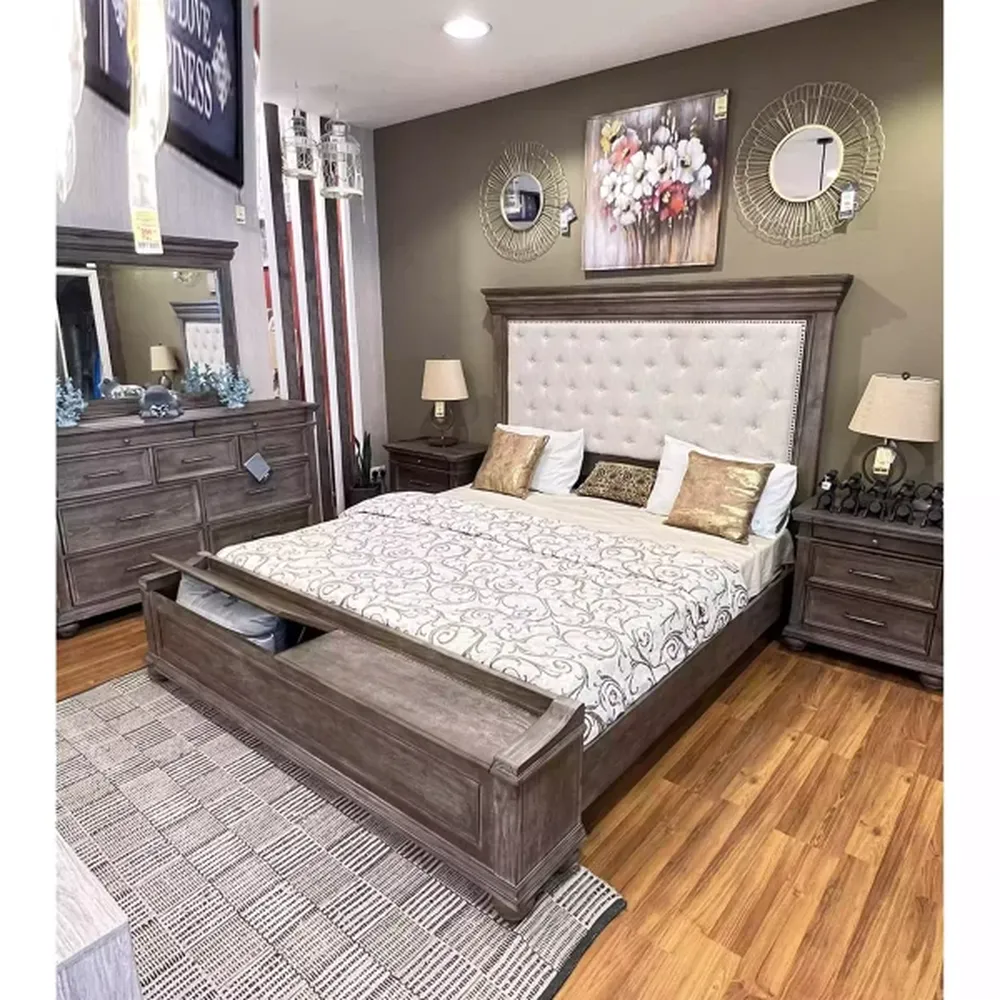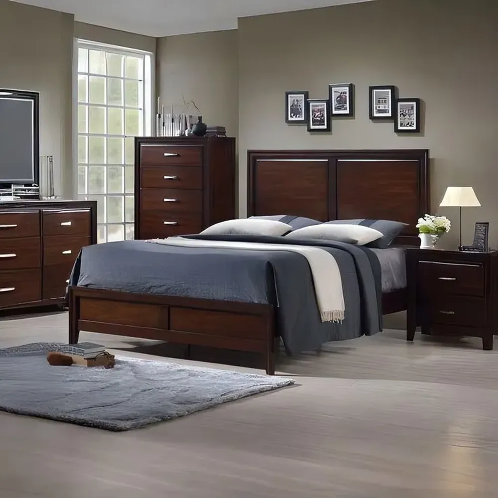 Traditional Dark Brown Solid Wood Bedroom Set with Paneled Headboard