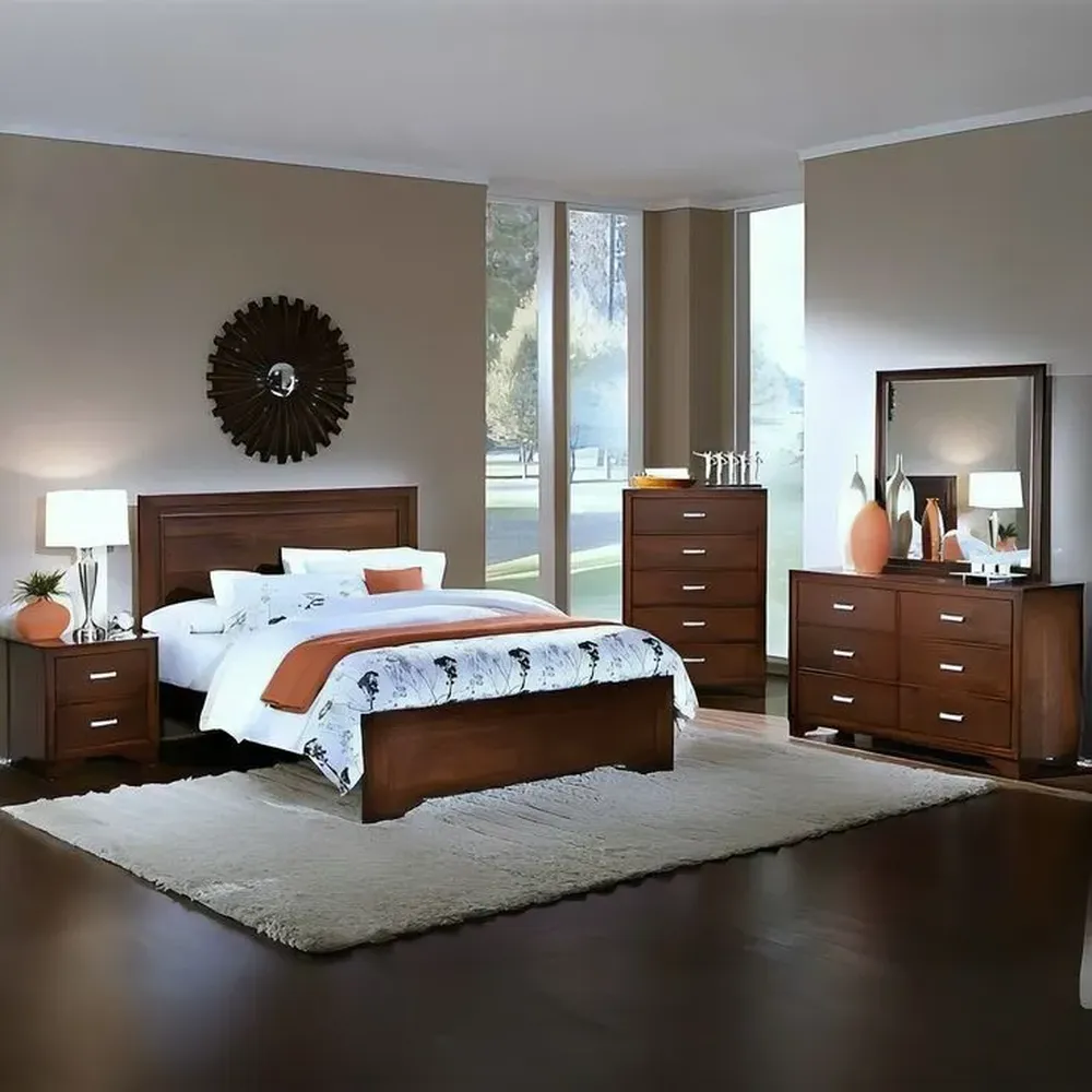 Traditional Dark Brown Polished Wood Bedroom Set with Multi-Drawer Storage