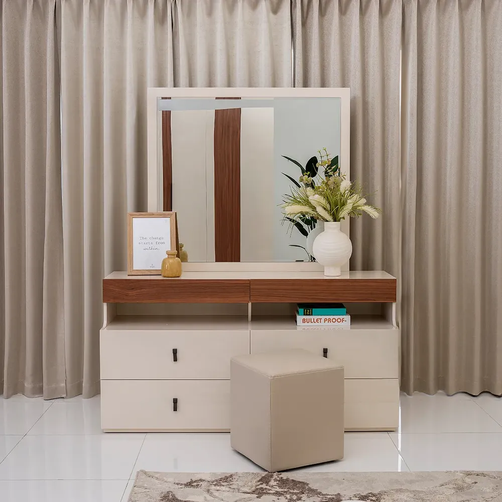 Turkish Style 6-Door Wardrobe in White and Dark Brown with Full Length Mirror Panels