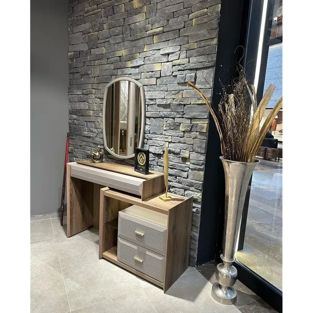 Turkish Style Geometric Mirrored Headboard Bedroom Set in Grey and Brown
