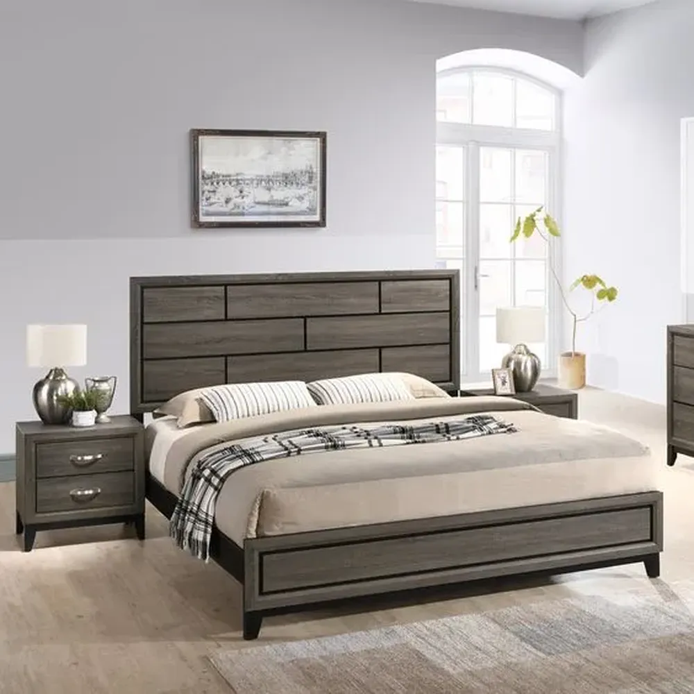 Urban Modern Dark Brown and Grey Bedroom Suite with Integrated Headboard Lighting