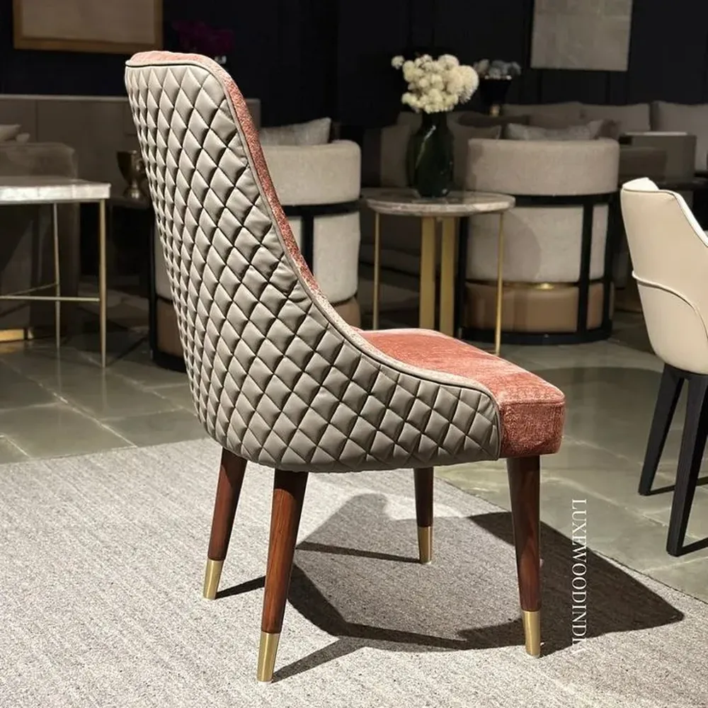 Regal Tufted Dining Chair in Rust Velvet and Grey Quilted Leather
