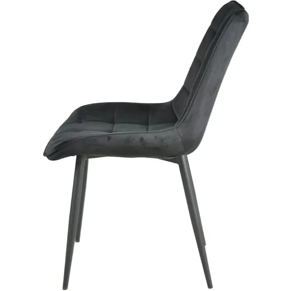 Grey Velvet Quilted Dining Chair with Slim Black Metal Tapered Legs