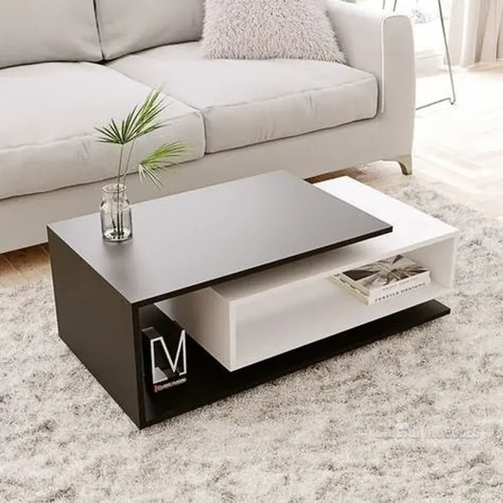 Geometric Z-Shaped Modern Black Coffee Table with Multi-Level Storage