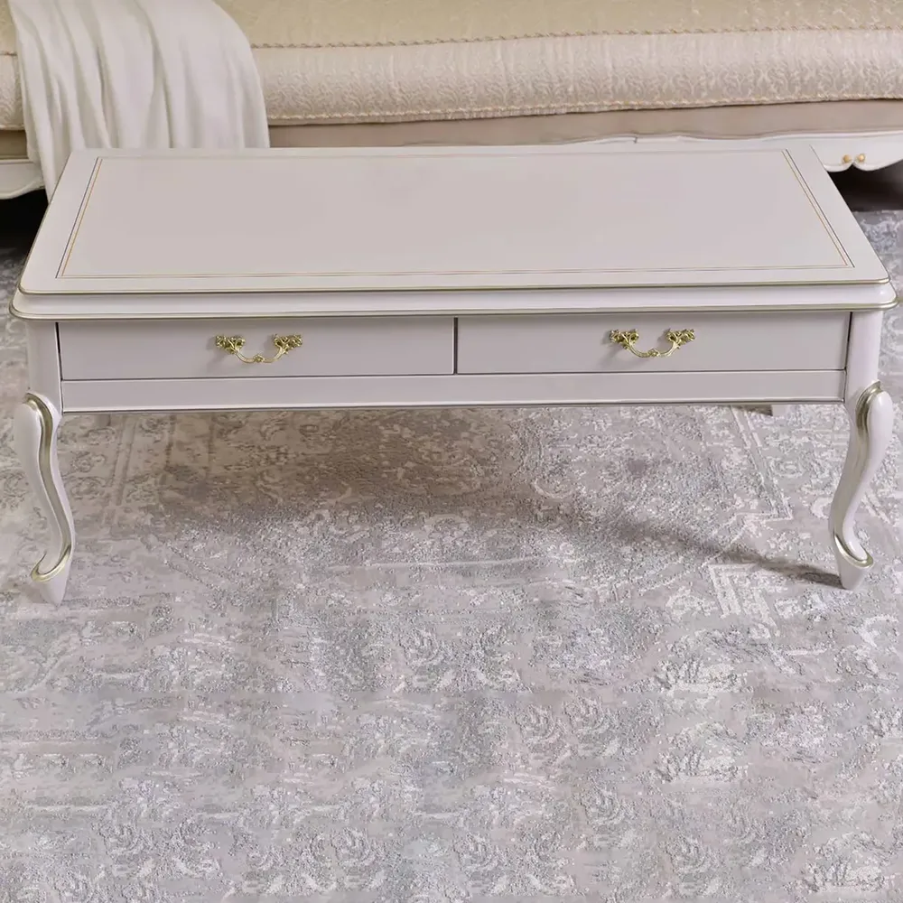 Elegant White Luxury Coffee Table with Gold Accents