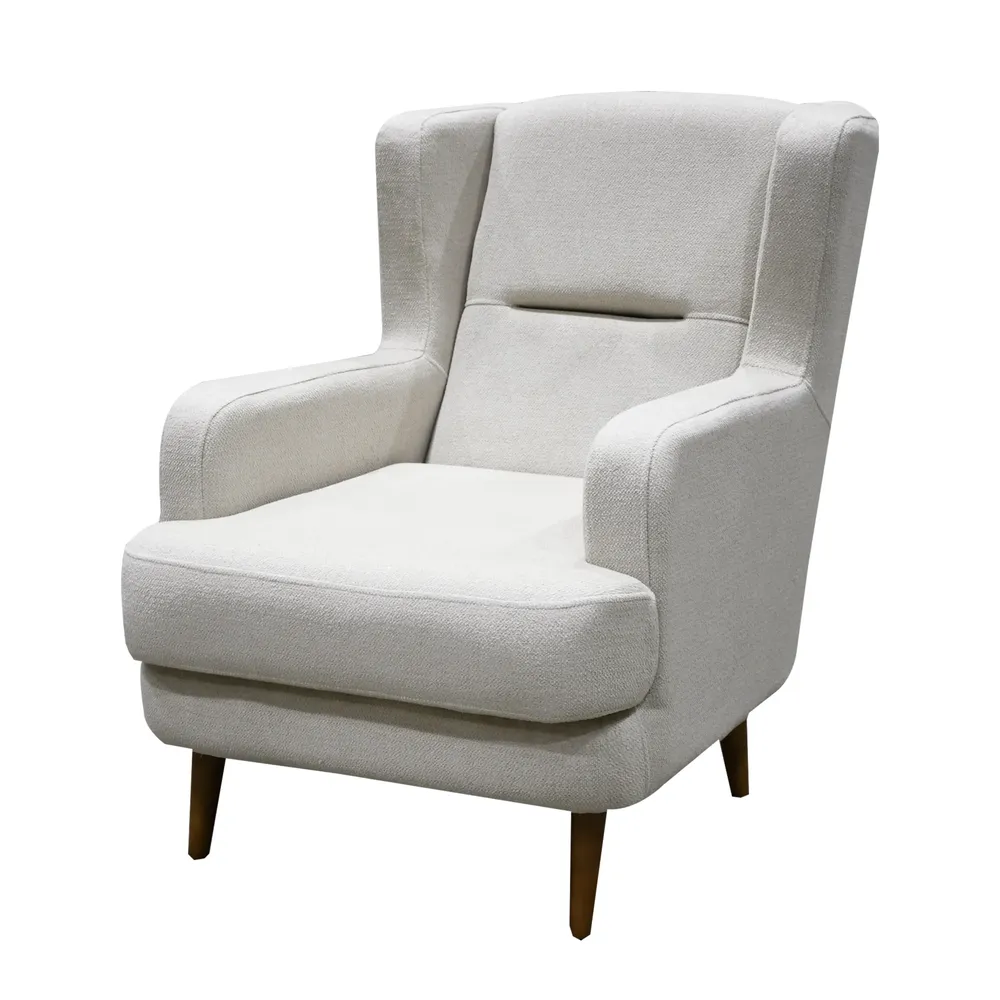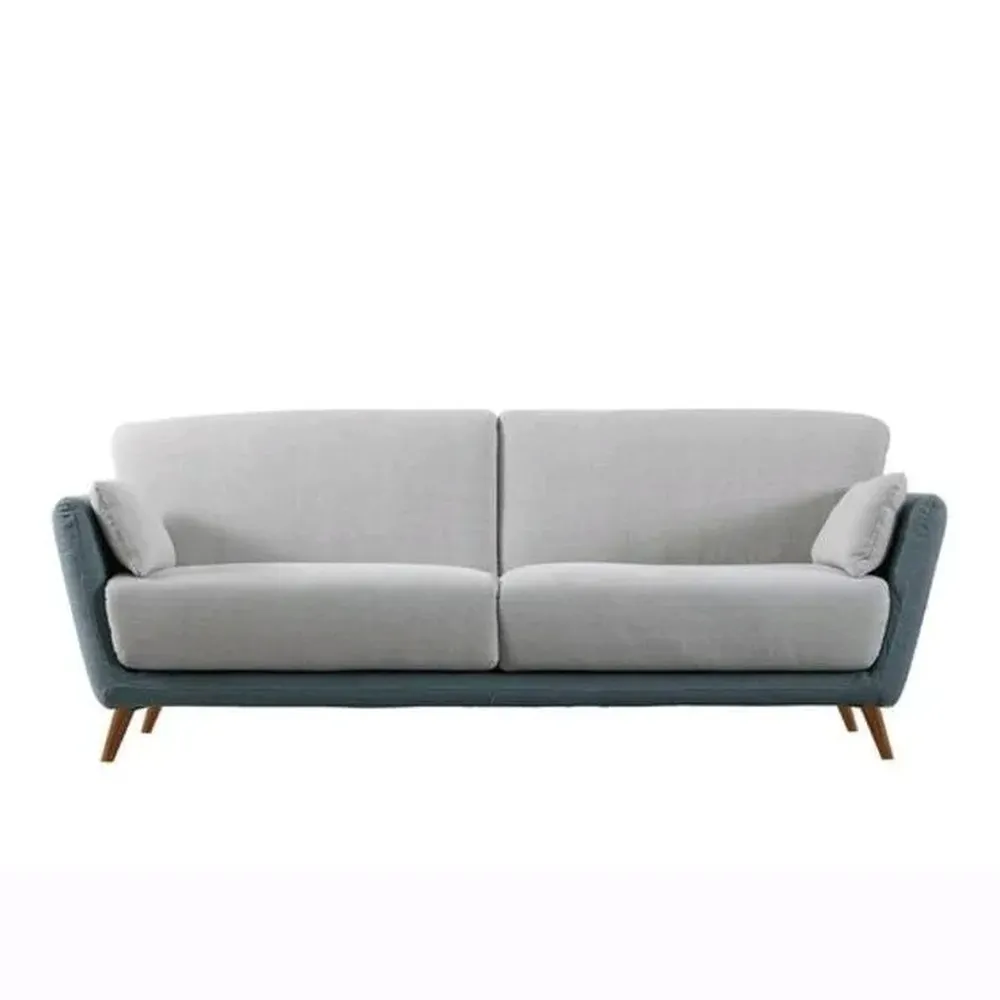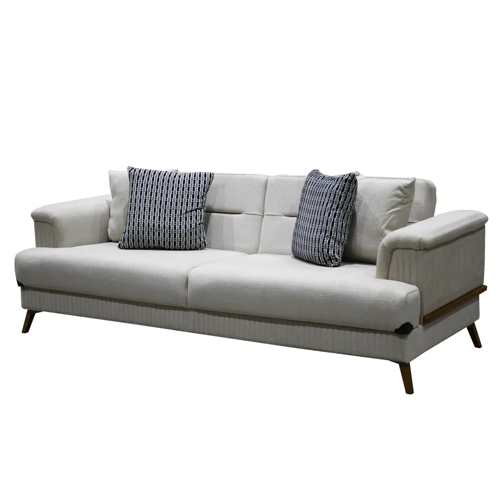 Modern Off-White Velvet Sofa with Walnut Wood Accents