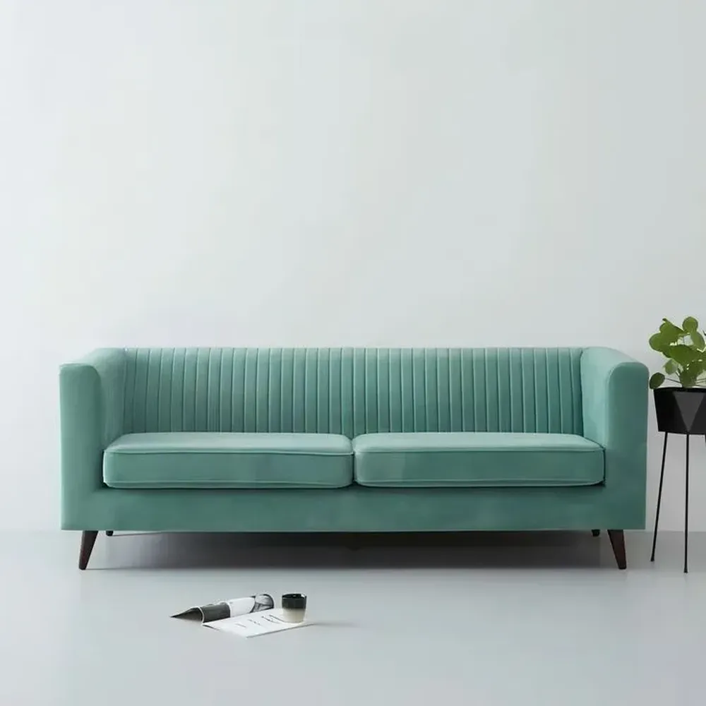 Premium Beige Velvet Sofa with Diamond Quilted Sides