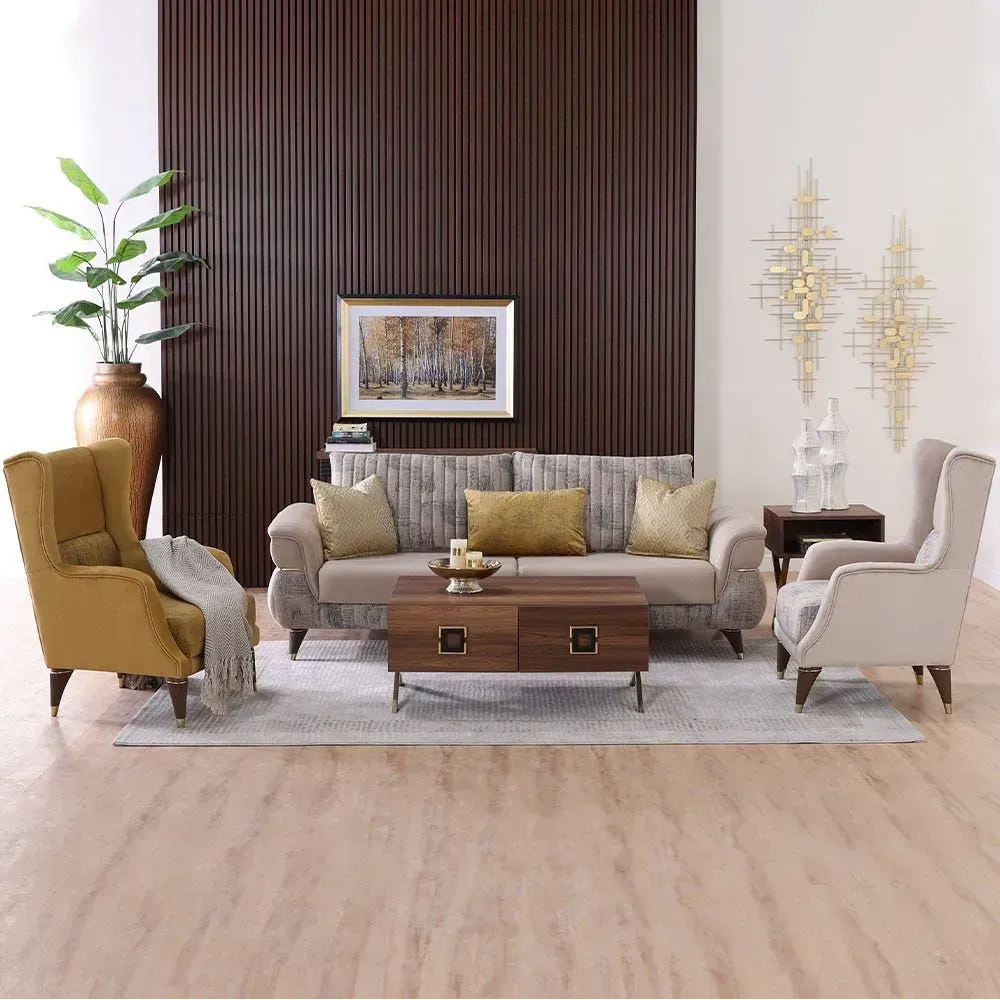 Luxury Turkish Velvet Sofa Set with Gold Deco Accents and Tufted Detailing