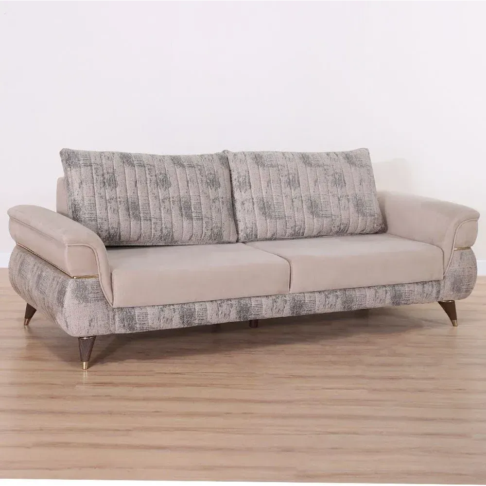 Luxury Turkish Beige Velvet Sofa Set with Vertical Channel Tufting and Gold Accents