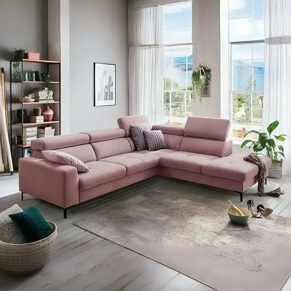 Modern Dusty Pink L-Shaped Sectional Sofa with Adjustable Headrests