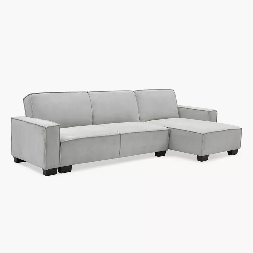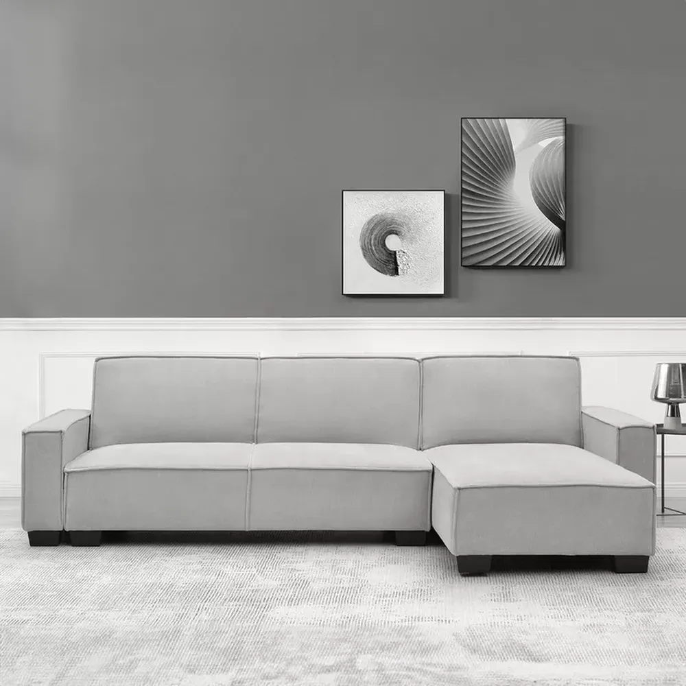 Modern L-Shaped Grey Fabric Sectional Sofa with Black Legs