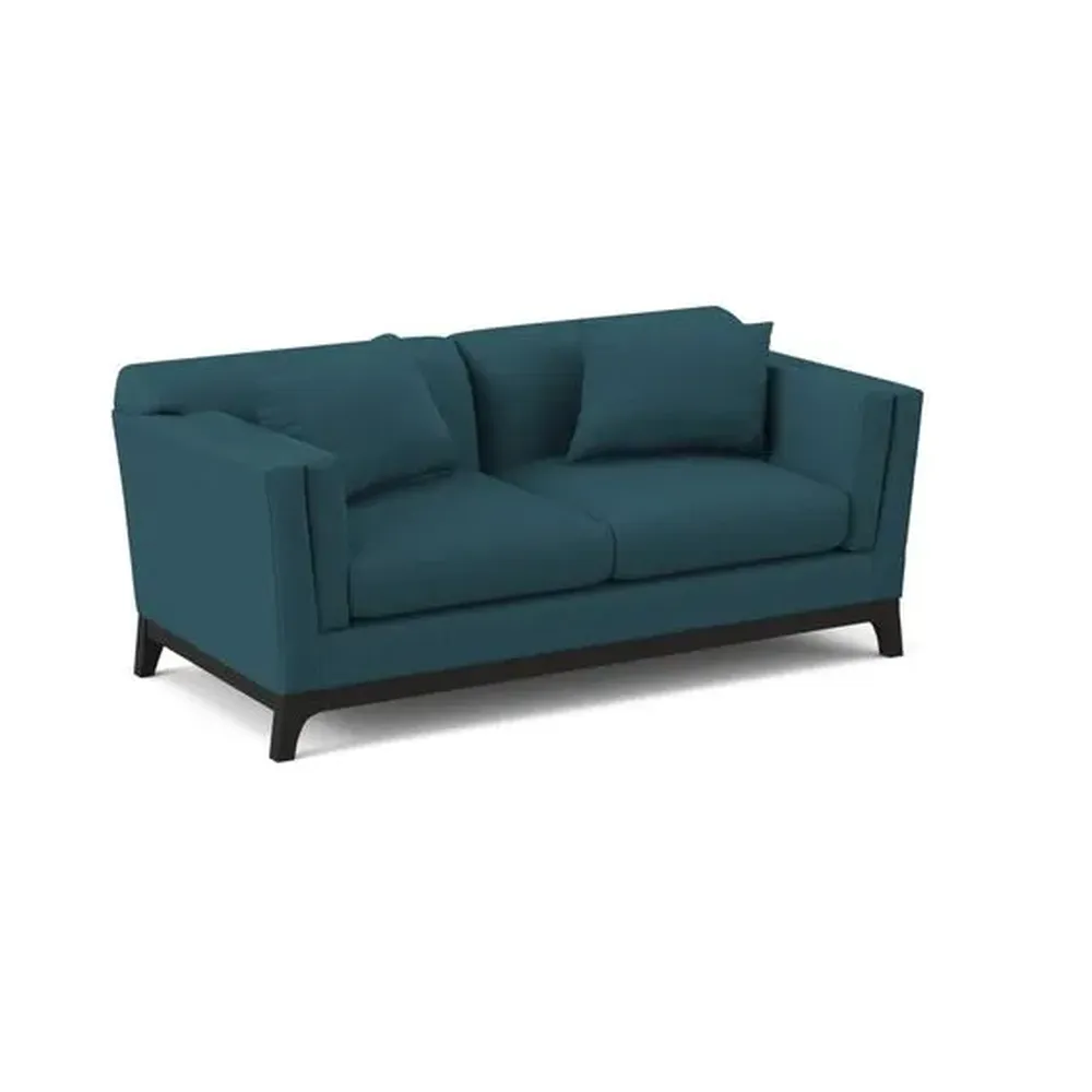 Contemporary Forest Green Jute Fabric Sofa with Dark Brown Base