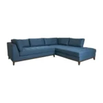 The Azure sectional provides the ultimate lounging experience. Dressed in a rich blue jute fabric, it features sophisticated button-tufting on the seats and clean, square back cushions. The dark brown wooden frame provides a sturdy, elegant foundation for this modern living room staple.