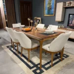 Classic 8-Seater Dining Table Set with Inlay Design and Beige Upholstered Chairs