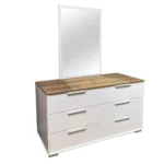 - Dual-tone white and oak design