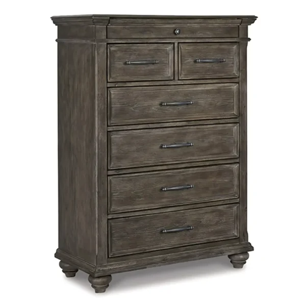 This timeless Chester tallboy is a masterclass in functional elegance. Crafted with a dark brown polish finish, it features a 2-over-4 drawer configuration that maximizes vertical storage. The molded drawer fronts and classic bun feet make it an ideal addition to any luxury bedroom suite, offering a warm and traditional aesthetic.