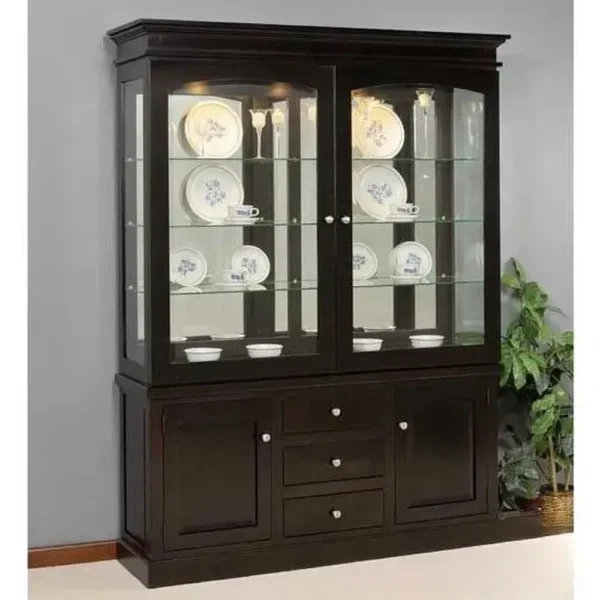A timeless addition to any dining or living area, this classic showcase offers ample space to display fine china and collectibles. The upper section features transparent glass doors and shelves, while the lower base provides functional storage with three smooth-gliding drawers and two spacious side cabinets. The dark wood finish adds a regal touch to traditional home interiors.