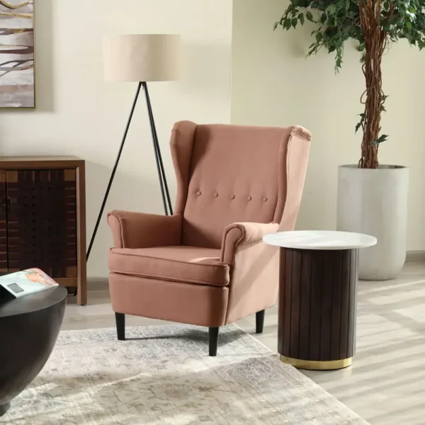 Enhance your bedroom corner with this classic wingback accent chair. Featuring rich velvet fabric and a sturdy half-polish frame, it offers a perfect blend of vintage aesthetics and modern comfort.