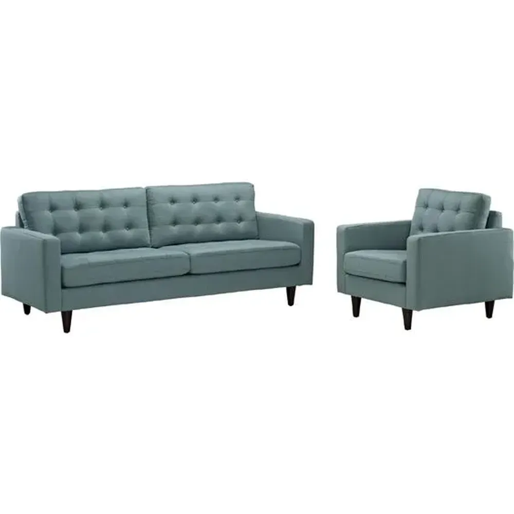 Simple Blue Jute Mid-Century Sofa and Club Chair Set