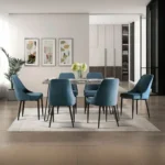 Contemporary Marble Top Dining Table with Velvet Upholstered Two-Tone Chairs