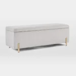 Contemporary Rectangular Upholstered Storage Settee with Gold Cylinder Legs