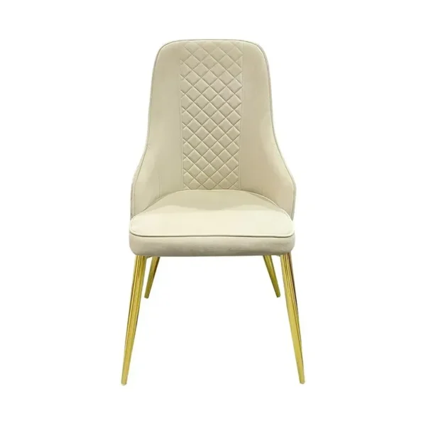 Cream White Leatherette Dining Chair with Diamond Quilted Back