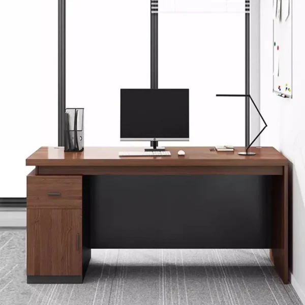 This premium One Person Workstation combines the elegance of dark wood textures with modern grey accents. Designed for executives and focused professionals, it features a sturdy, wide-top surface and a built-in storage unit that includes a top drawer and a bottom cabinet. The minimalist silhouette ensures it fits perfectly into contemporary office layouts while providing the privacy and organization needed for high-level productivity.