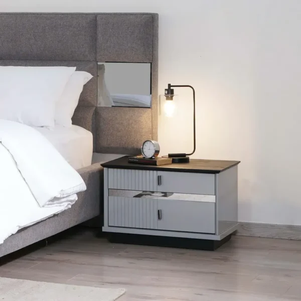 Grey Velvet Turkish Fabric Bed with Integrated Side Mirrors