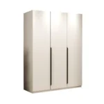 This massive Turkish-style cupboard offers a mix of hidden storage and elegant display space. Featuring long gold handles and transparent glass sections, it turns your wardrobe into a sophisticated showroom for your clothing collection.