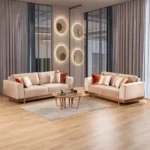 Luxurious Turkish Style White Velvet Tufted Sectional Sofa with Gold Trim Accents