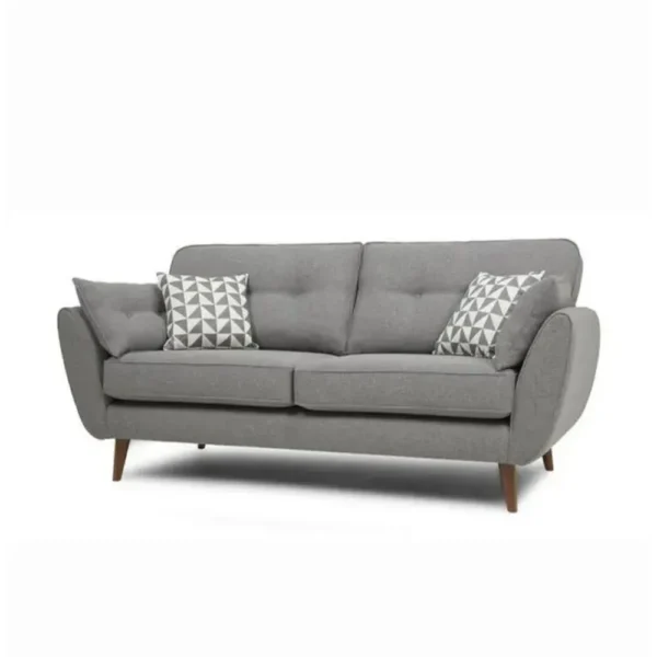 Mid-Century Modern Grey Fabric Sofa with Tapered Wood Legs
