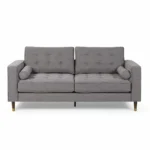 This mid-century inspired sofa brings effortless style to your home. Upholstered in a textured grey jute fabric, it features subtle button tufting and elegant tapered legs. The compact design makes it ideal for smaller apartments while maintaining a high-end designer look.